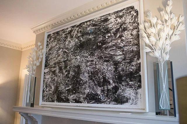 Painting over hearth: Artist is Peter Manion and it’s a commissioned piece called Em. Contemporary Oil painting inspired by Theodore Gericault’s Raft of the Medusa. His website is www.petermanion.com